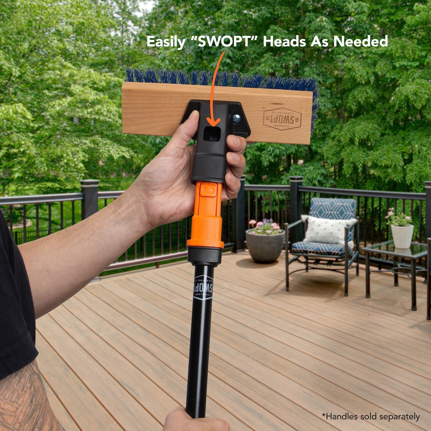 SWOPT scrub and deck brushes help you tackle tough messes and outdoor cleaning challenges with ease. With robust bristles that can power through grime, mold, and stubborn stains, these cleaning heads are designed to withstand rugged use. Ideal for scrubbing decks, patios, and more. They're the perfect tool for snow, slush, dirt, and lawn debris and will carry you through every season of outdoor clean up.
