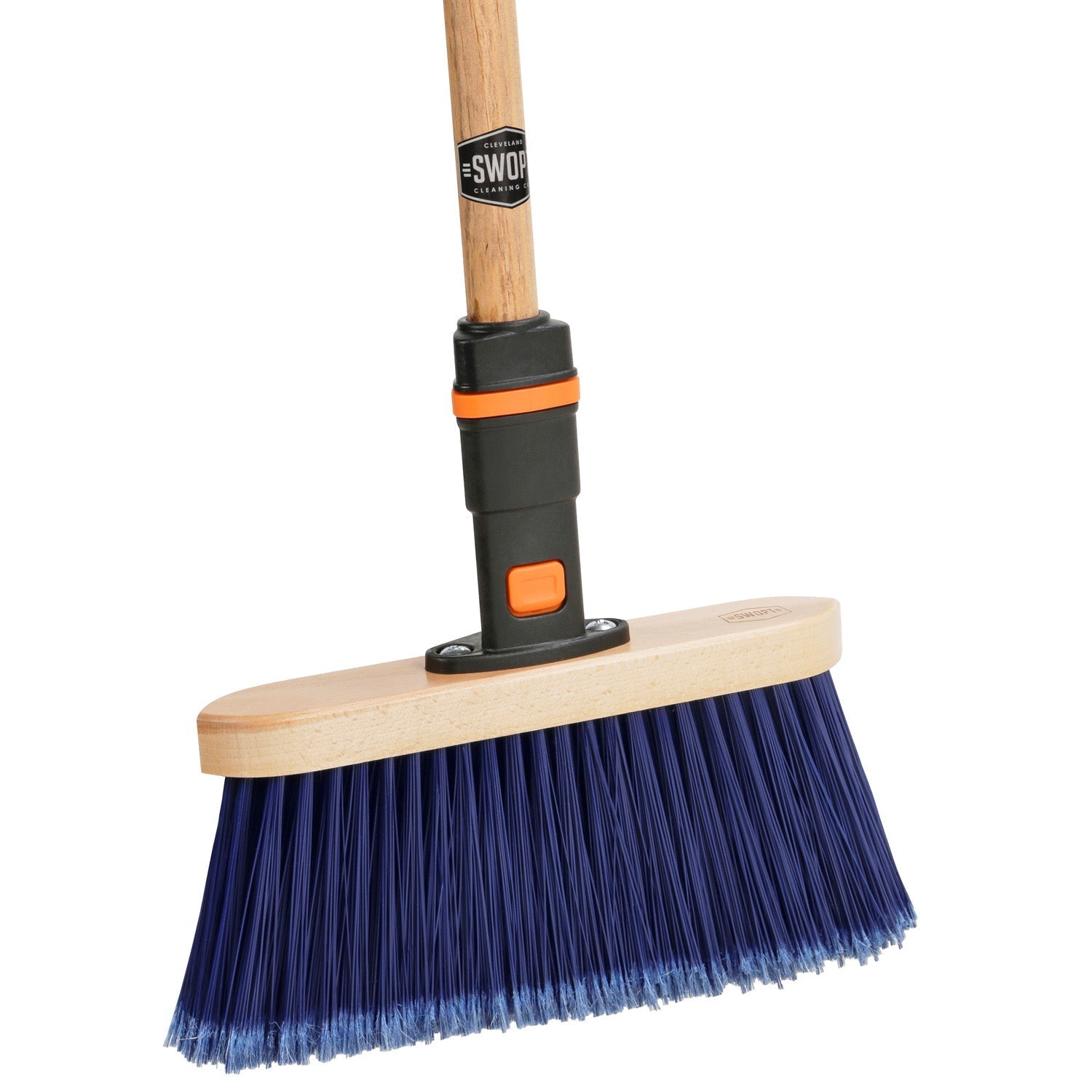 11 in. Premium Multi-Surface Angle Broom Head with 48 in. Wood Handle Combo