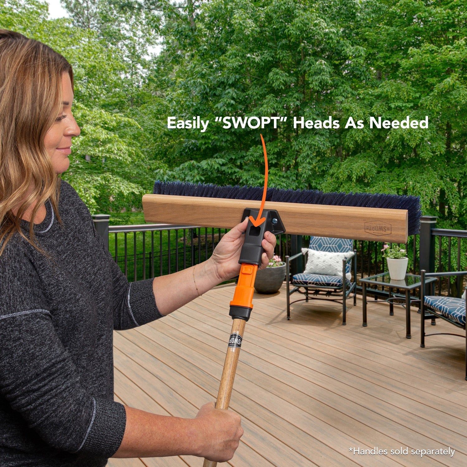 Effortlessly sweep away dirt and debris with SWOPT push brooms. Our brooms are unlike any other broom you've used before. Part of our interchangeable cleaning system that allows you to "swopt" heads and handles at the push of a button, you can take the bore out of the chore. With a simple snap, lock and clean and you'll have your home or outdoor space looking pristine in no time.